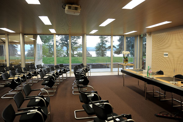 L’Auditorium du Centre Brocher peut accueillir jusqu’à soixante personnes. Modulable, il permet de recevoir des groupes plus restreints autour d’une table ronde. Doté d’un matériel audio-visuel adapté à la tenue de conférences modernes, il offre en outre, par sa baie vitrée, une vue imprenable sur le lac et le Jura.