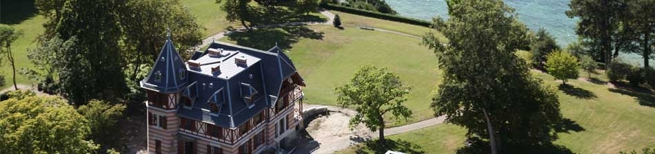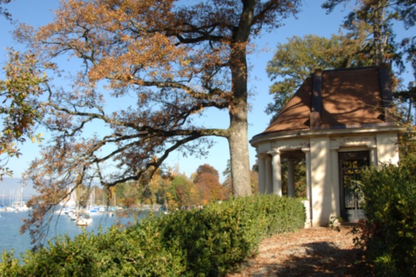 La parcelle de la Fondation Brocher s’étend sur près de trois hectares au bord du lac Léman à Hermance, près de Genève. Faisant également face aux cimes du Jura, le Centre Brocher est un havre de paix. A ce titre, il offre un cadre idéal pour des retraites et des rencontres scientifiques de pointe. Le parc arboré, tilleuls, marronniers, tulipiers, érables ou encore pins sapo, est une source d’inspiration inépuisable et une étendue propice à la réflexion. La gloriette et ses colonnes doriques - pavillon surplombant le Léman - représente un lieu paisible, bercé par les vagues.