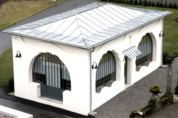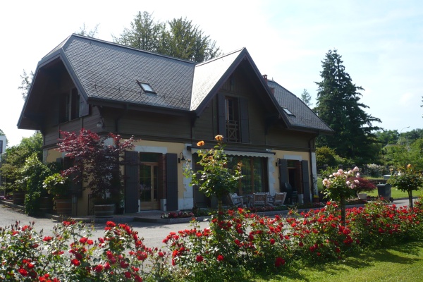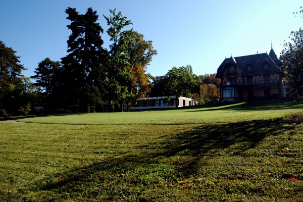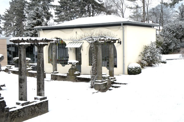 ![]() | Ce bâtiment de style Art nouveau se compose d’un volume unique, de forme rectangulaire, largement vitré. Les ouvertures, d’importantes baies en plein cintre, sont en ferronnerie et verre polychrome. Elle donne sur une roseraie.